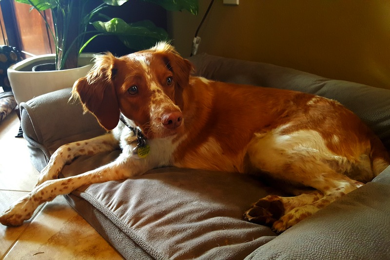 Loving but Independent with a Strong Hunt DriveKya is not a Velcro dog. She is independent and likes ear scratches and belly rubs but after an hour of lying near you, she retreats to a dog bed to stretch out in her own space, sometimes with a deer antler or horn. Currently, Kya is sharing her foster home with 4 other senior Brittanys. She respects their space and plays well with the young Brittanys, too. But, if she has to make a choice over hunting lizard or playing rough-and-tumble with the other Brittany dogs, she will pick the lizards.