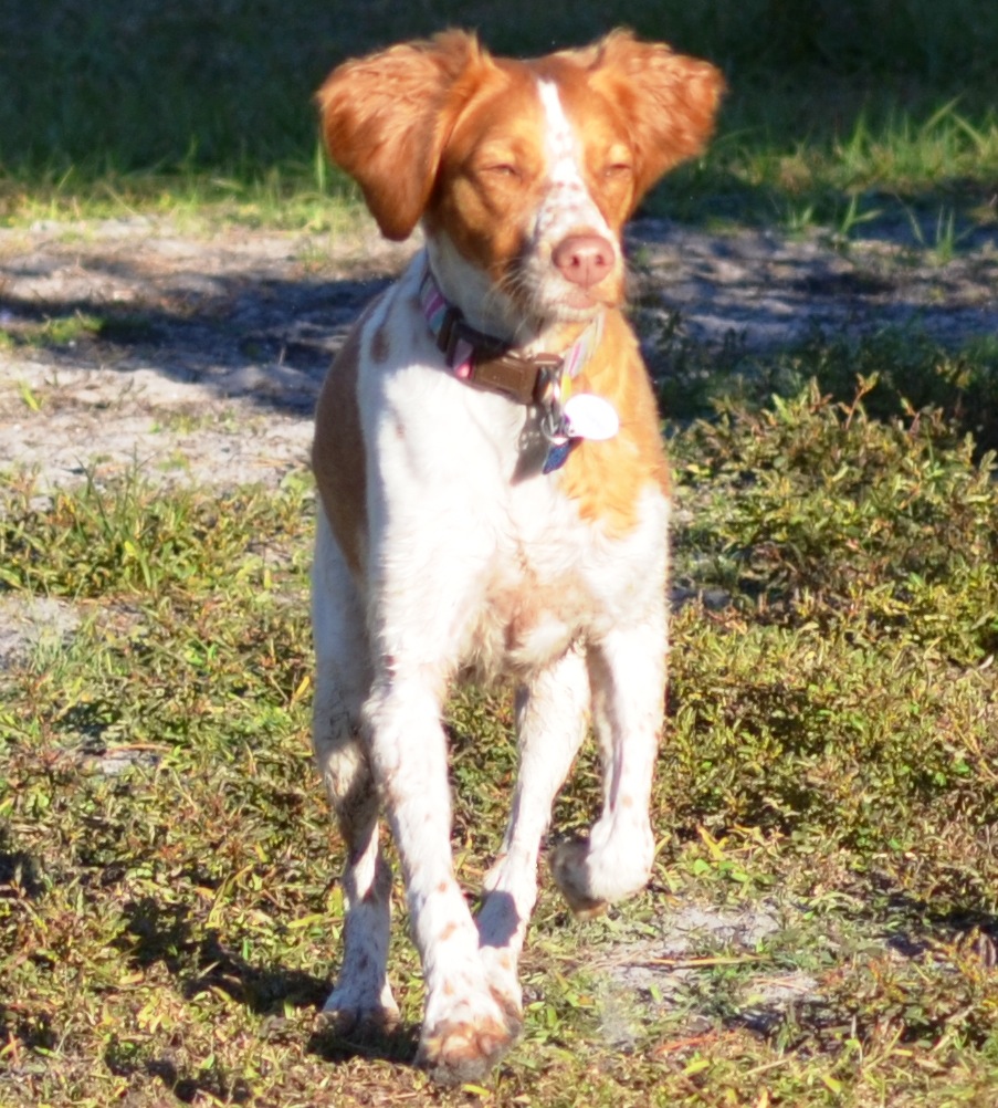 Up to date on vaccines and microchipped, Kya is ready for her forever home! She has been loved and nurtured her whole life but the set-ups just were not right in her two previous homes. Kya needs room to run and hunt. Her need for sustained, full-out speed and set exercise routines begs for only experienced Brittany owners to adopt her. Kya's bloodline is one of champions, and she lives up to that champion spirit and loves to keep busy. We believe she would do well in an active home that can offer a regular daily routine of off-leash exercise. So, a home providing secure, fenced-in acreage, with access to the outside from a doggy door would be an ideal set-up for our active, Florida-born Brittany girl.