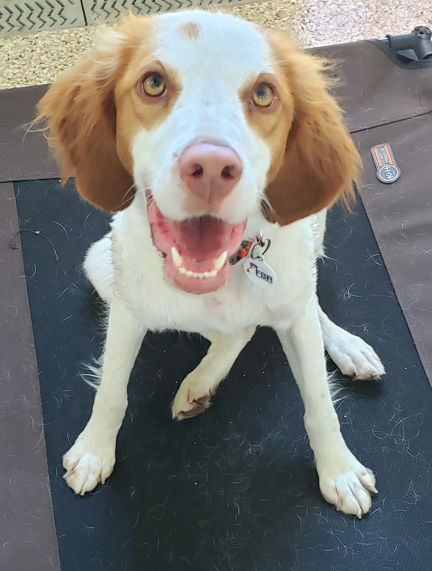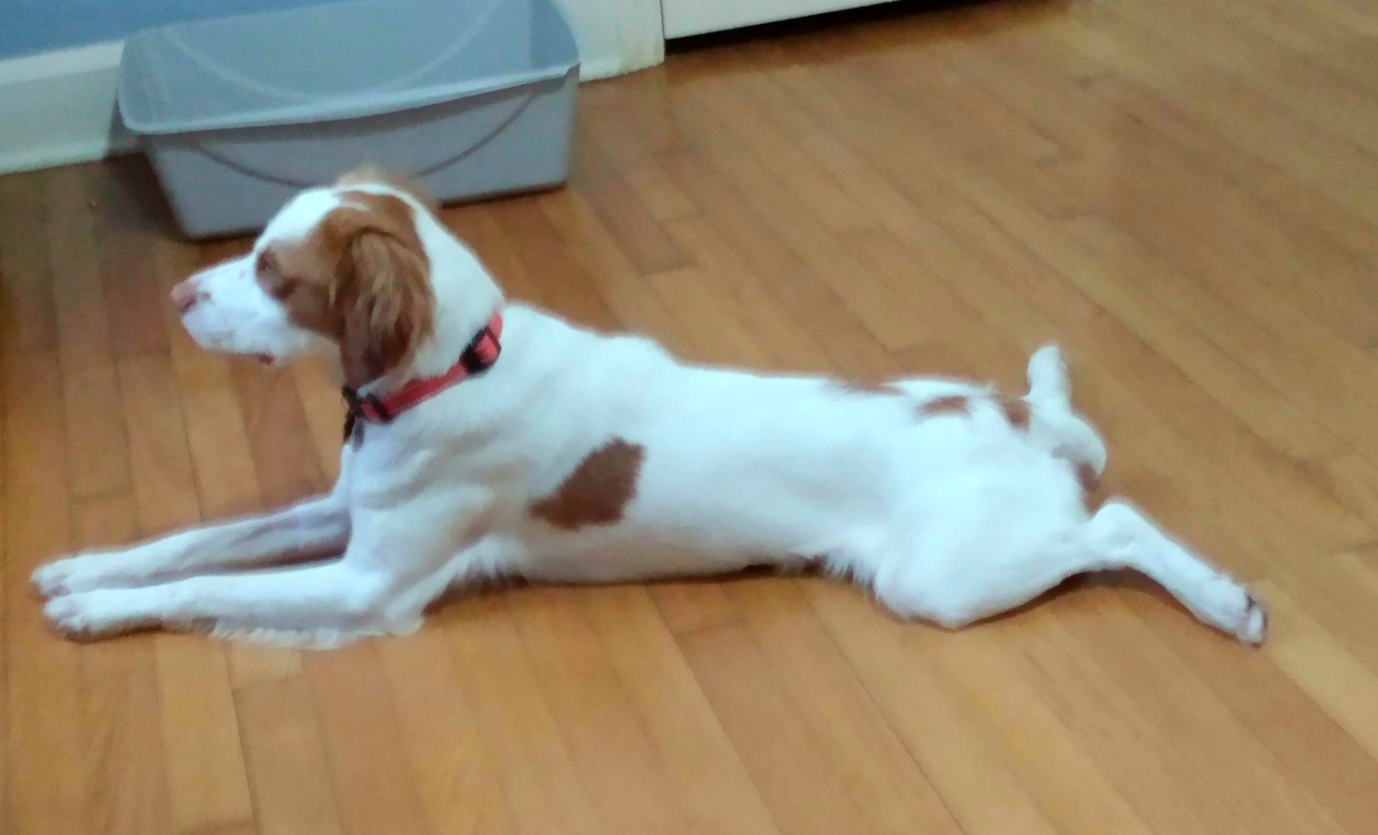 Respectful to the older senior dogs in her foster home, loves playing with the young Brittanys in her foster home. She loves swimming.