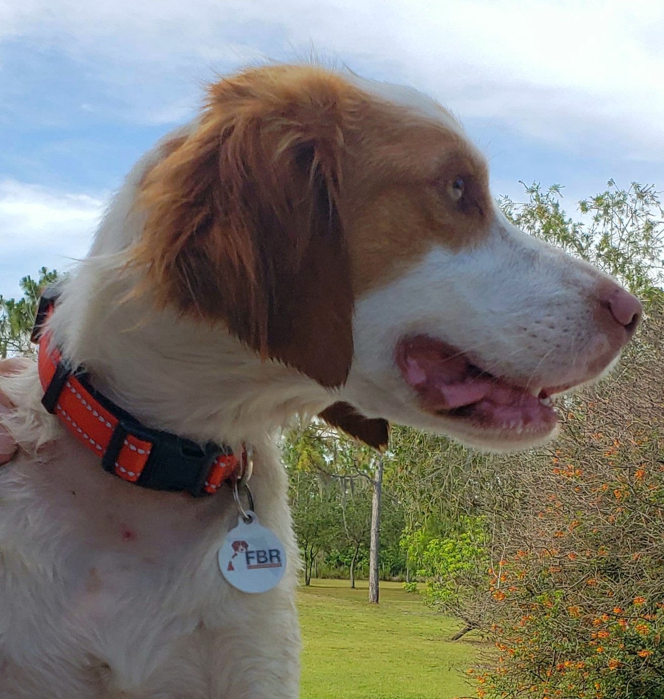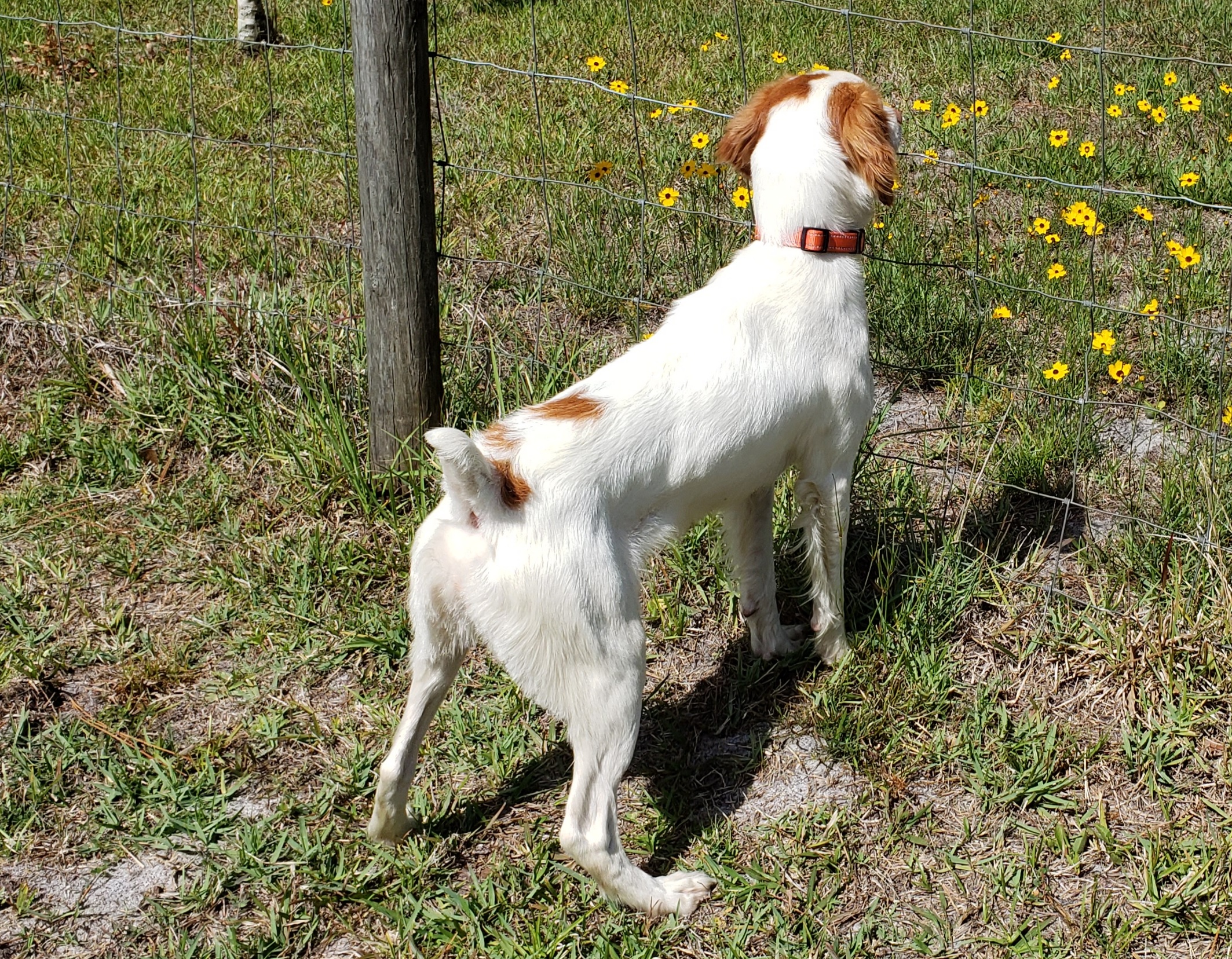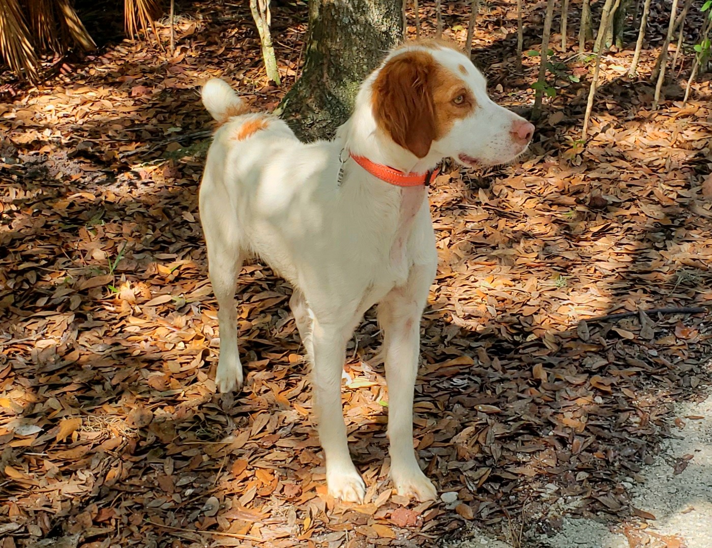 Allie is a tiny 29 lbs petite framed AKC Brittany. She has a beautiful Brittany trot and loves to run, play and swim. Her favorite thing is pointing out the wildlife in her foster home.