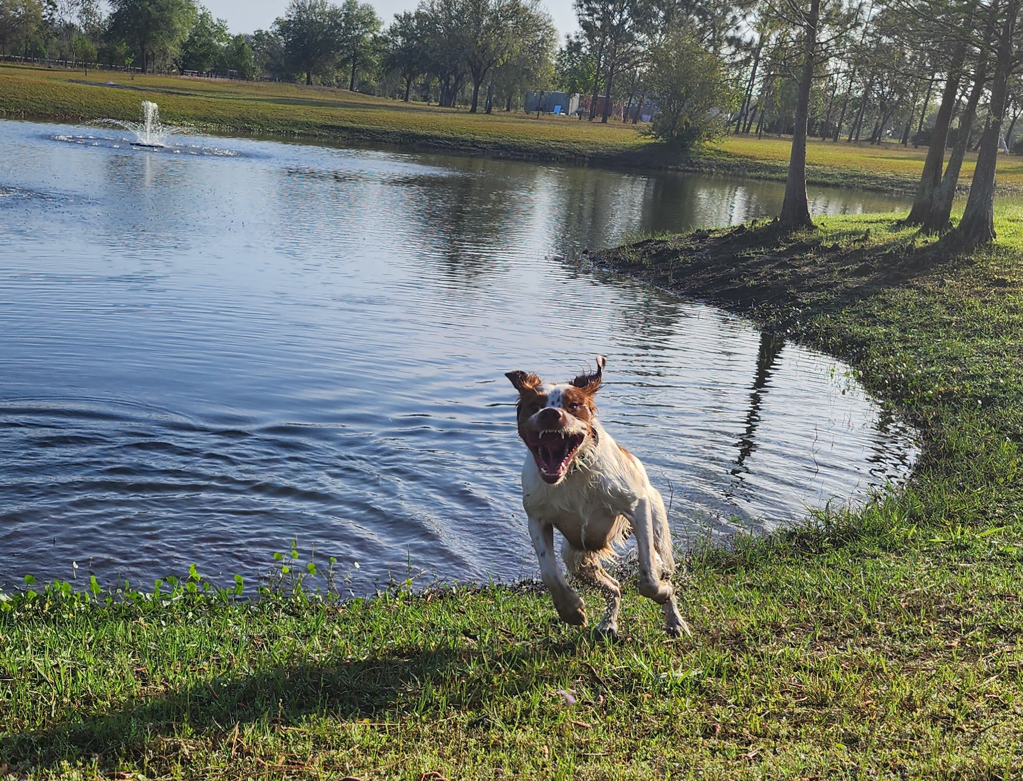Cash just arrived and we just love what we see. He knows commands, heel, sit, down, come and place. Walking this 52 lbs. lean muscular boy is easy! He loves car rides, swimming, running, playing retrieving games and chewing on hard toys like Nyla bones and deer antlers.