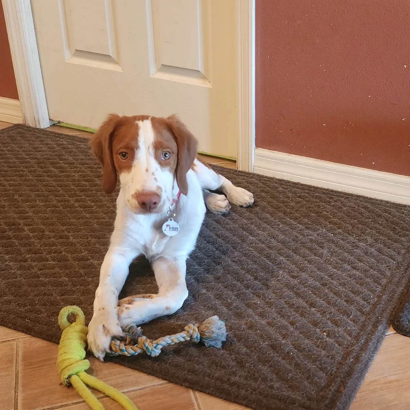 At 5 months old he is 33 lbs; we believe Max will be a 50 lb adult Brittany.